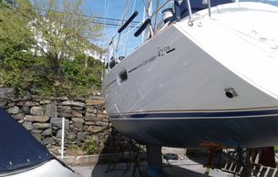 This was a boat that was blocked on 2 keel blocks. The aft block pushed through the hull. Should have had 4 blocks to hold keel.